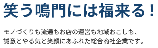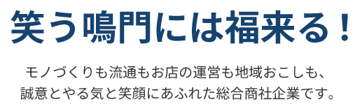 鳴門屋は「笑顔を届ける!」をモットーに、徳島にあるいいモノを見つけ、加工し、販売する会社です。